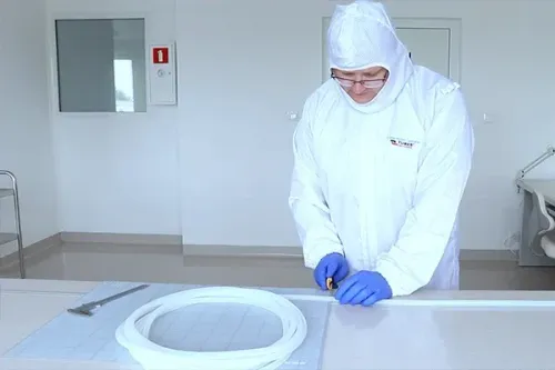 Konfekce hadic v čistém prostoru – pro farmacii, chemii a biotechnologie. Plná čistota, sledovatelnost, shoda s ISO a připravenost pro sterilní použití.
