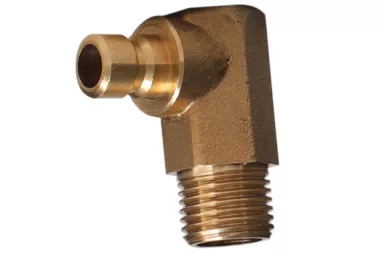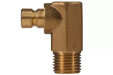 90° konektor DN 6 pro rychlospojky s metrickým vnějším závitem, bez ventilu. Široce používaný v průmyslu k chlazení vstřikovacích forem a odlitků z plastů, hliníku, mosazi a zinkových slitin. Lze použít pro vodu v čisticích strojích, pro horký olej, vodní páru. Série: TST 6. Provozní tlak: 10 bar. Materiál: mosaz. Provozní teplota: od -20°C do +200°C.