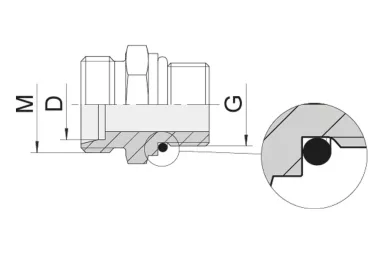 Šroubovací přípojka DIN 2353: 24° korpus DIN 2353 s metrickým vnějším závitem / vnějším závitem UNF, O-kroužek. Materiál:pozinkovaná uhlíková ocel.