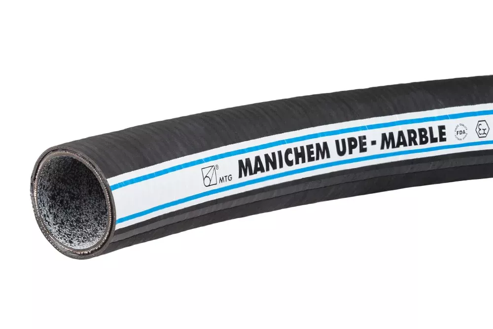 MANICHEM MARBLE je produkt pro agresivní chemii. Jde o robustní sací/tlakovou hadici s vnitřní vrstvou z chemicky odolného polyethylenu s ultravysokou molekulovou hmotností. MANICHEM je široce používán v chemickém a petrochemickém průmyslu. Navíc je jeho vnitřní vrstva v souladu s požadavky na potravinářské hadice. Nízký koeficient tření při průtoku, absence usazování média na stěnách a s tím spojená snadná čistitelnost umožňují využití této hadice také ve farmaceutickém a kosmetickém průmyslu. Úplná antistatičnost hadice MANICHEM dovoluje její použití ve všech zónách s nebezpečím výbuchu.