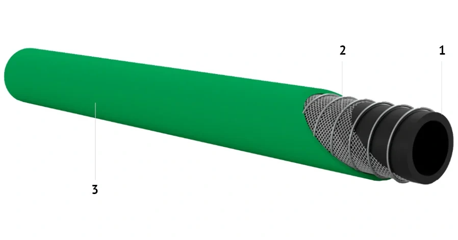 Vnitřní vrstva se vyrábí z materiálu odpovídajícím způsobem odolného vůči chemické korozi, tedy např. z pryží EPDM, EPM, FKM, polyamidu, polyetylenu UPE, fluorových polymerů (PTFE, PFA, MFA, FEP). Výztuž tvoří kord nebo textilní oplet a u sacích/tlakových hadic ocelová spirála (jedna či více). Vnější vrstva musí být vyrobena z materiálu odolného vůči vnějším vlivům.